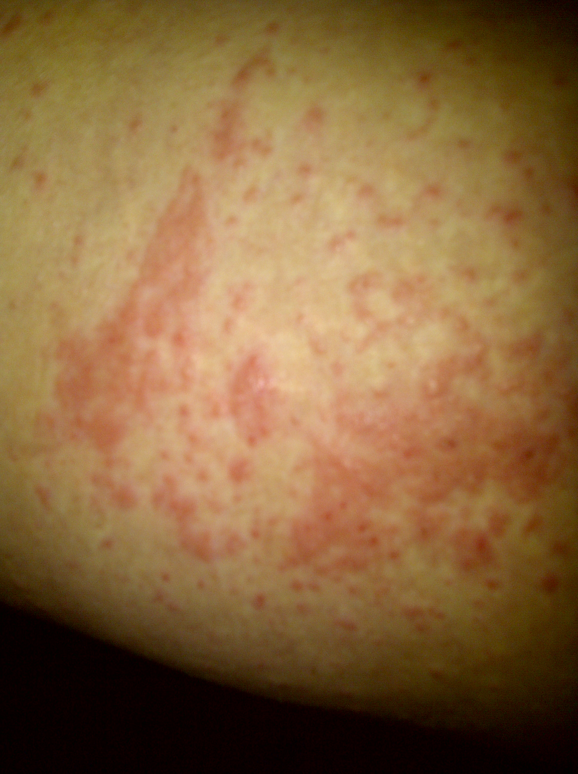 However, I started feeling sluggish and bloated which was often accompanied with serious abdominal discomfort after meals. Then in June of 2013, I developed a severely itchy skin (see my photo below).  It was so bad at times that I would scratch until my skin bled. The scratching would make the rash worse and so the vicious cycle began. Sleeping was also a problem.  Lack of sleep and having the itches left me feeling very stressed and drained.